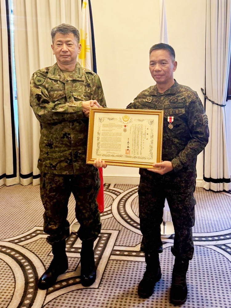 比陸軍総司令官に「防衛協力章」 自衛隊の森下陸上幕僚長