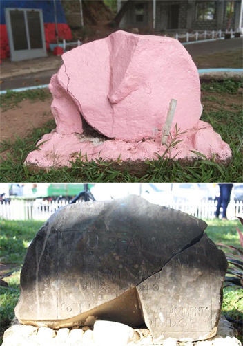 米軍の記念碑がピンク色に 背景は政治的対立か?
