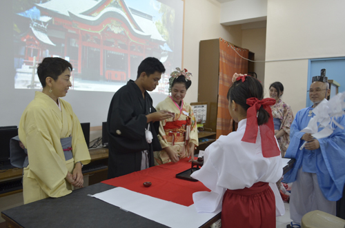 比の高校で模擬神前結婚式 日本語パートナーズが企画