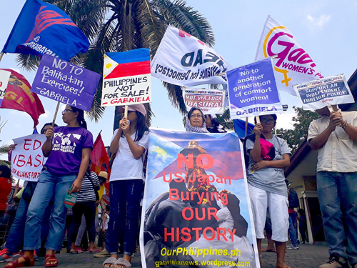 慰安婦像撤去と「軍事化」に抗議 女性団体ガブリエラ