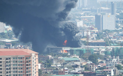 建設中のスカイウエー崩落 プラスチック置き場で火災