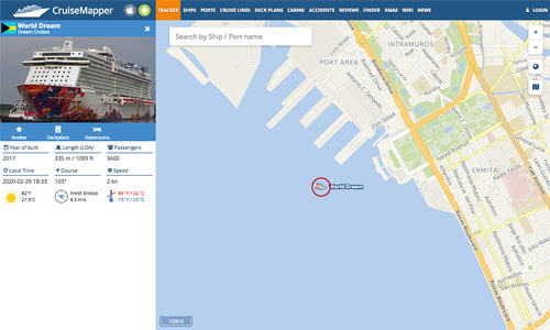 香港クルーズ船がマニラ寄港 1月乗船客が新型肺炎に感染