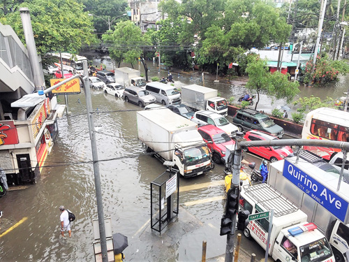 大雨で道路冠水 大渋滞に 季節風影響 ルソン島中西部も