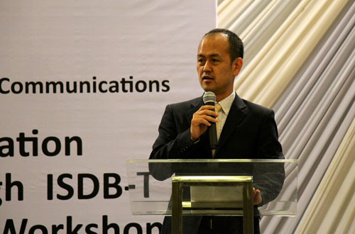 比での地デジ活用への期待を話す総務相の高木次長=8日午後1時半ごろ、首都圏パシッグ市で冨田すみれ子撮影