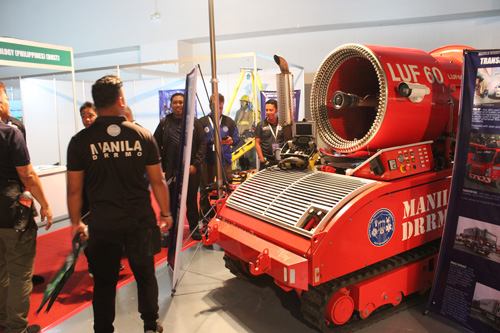 マニラ市危機管理局のブースで紹介されていた消火ロボット「LUF60」=9日、首都圏パサイ市で沼田康平撮影