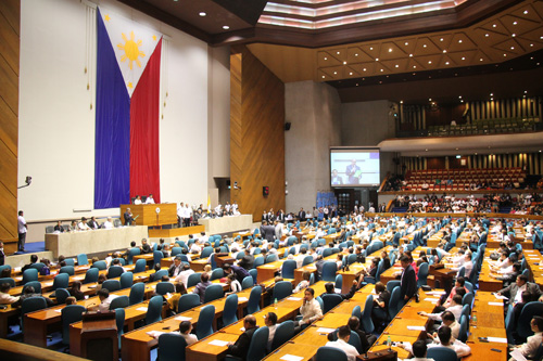 下院議事堂で行われた特別合同議会=22日午前9時半ごろ、首都圏ケソン市下院議事堂で冨田すみれ子撮影
