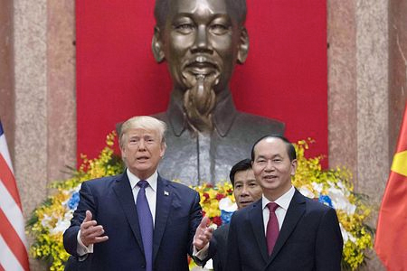 アジア歴訪中のトランプ米大統領は12日、ベトナムのハノイでチャン・ダイ・クアン国家主席と会談した。トランプ氏は冒頭、ベトナムなどと中国が領有権を争う...
