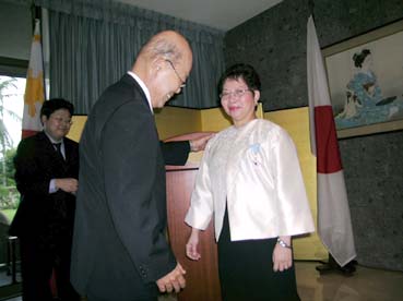 瑞宝双光章を受章した在フィリピン日本大使館職員、セシリア・トレンティーノさん(59)の勲章受章式が八日、マカティ市の駐比日本大使公邸であり、招待客ら...