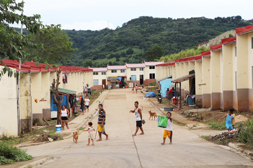 2千戸が立ち並ぶ再定住地。半分以上が空き家だった=11日午後3時ごろ、リサール州タナイ町で遠藤美波撮影