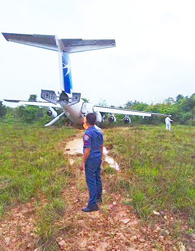 パラワン州コロン町のブスアンガ空港で8日午後、格安航空会社(LCC)のスカイジェット機が着陸後、滑走路を外れて停止した。乗客80人にけがはなかったが...