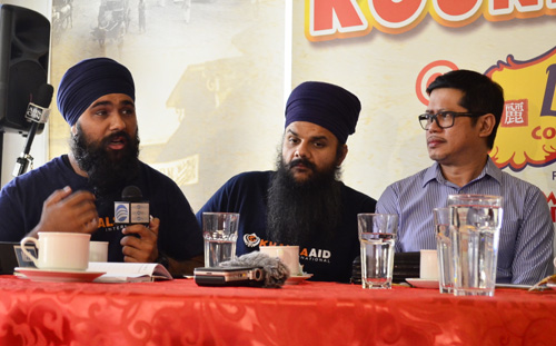鉱山での土砂崩れ被災地の様子を語る国際NGOメンバーのジュワラ・シンさん(左)と、話を聞く比鉱山事業者会議所のディマクラガン氏(右)=10日午前10時ごろ、首都圏ケソン市で伊藤明日香撮影